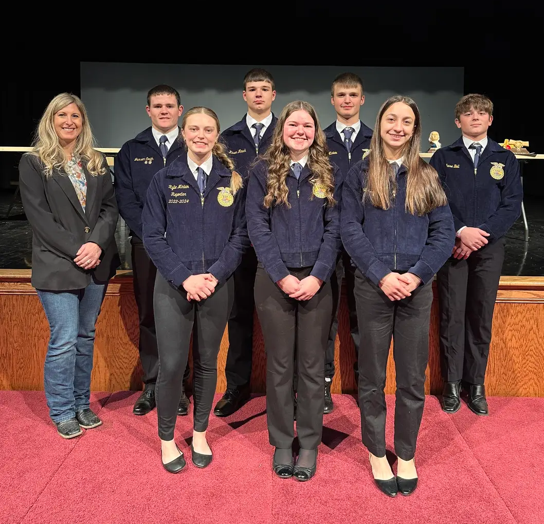 The chapter celebrated with a scavenger hunt at the high school with Ag facts, High 5's at the grade school, and an Ag Olympics (stick horse barrel racing, pole bending, egg race and sack race.