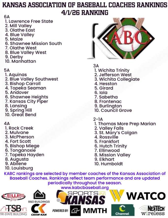The TMP-Marian Monarchs are ranked atop the 2-1A Kansas Association of Baseball Coaches rankings released Wednesday (April 1).