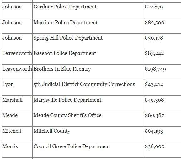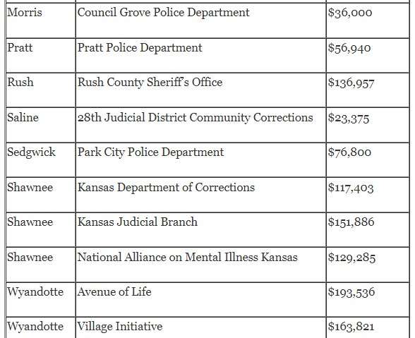 “I commend the men and women of Kansas who uphold our laws and keep our communities safe,” Kelly said. “These grants will provide our law enforcement officers and criminal justice agencies with the resources they need to fight crime and support victims.”
