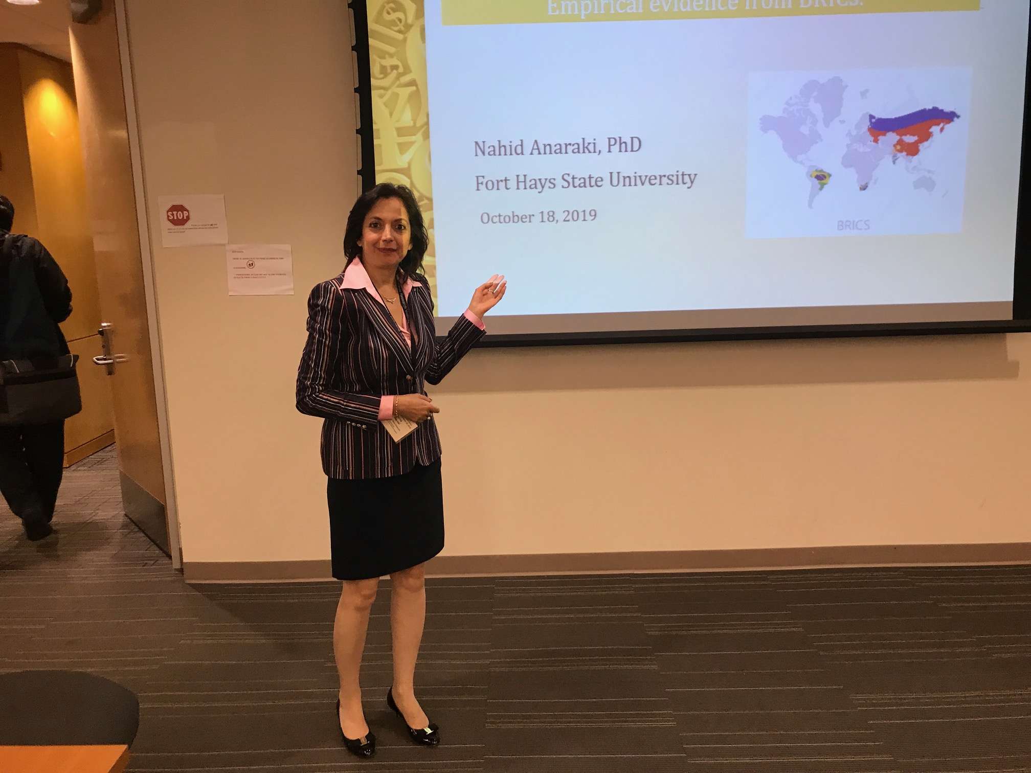 Dr. Nahid Kalbasi Anaraki, assistant professor in Department of Economics, Finance and Accounting at Fort Hays State University, presented her paper on the effects of Federal Reserve interest rate policy on capital reversal at the recent Academic and Business Research Institute Conference in Washington, D.C.