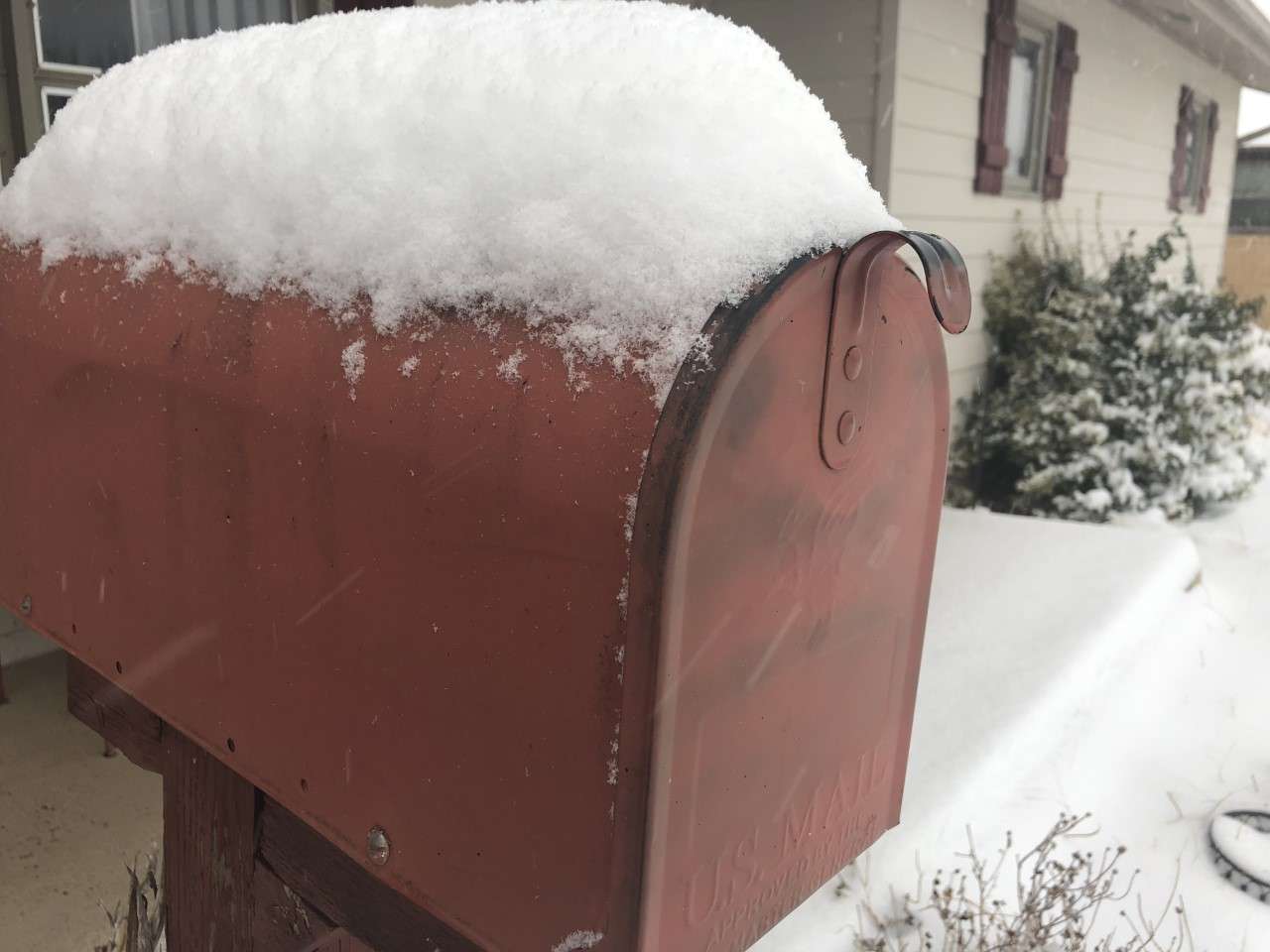 Snow over night continues in Hays Friday morning. It's the first measurable moisture this month.