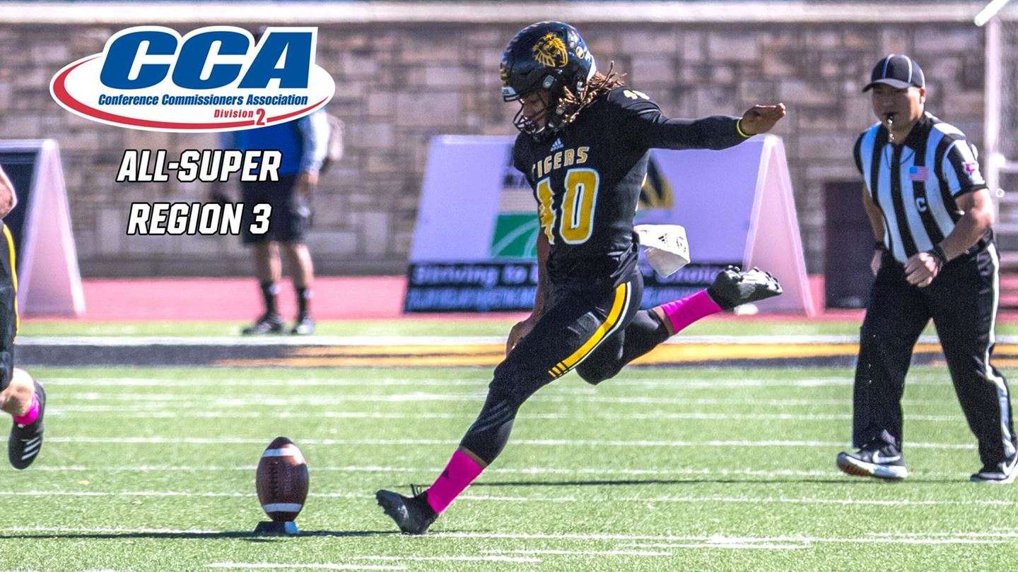Brown earned MIAA Special Teams Player of the Year each of the last two seasons. He averaged 1.72 field goals per game this year, succeeding on 19-of-23 attempts. He added in a school-record 52 PAT makes for 109 points for the season. He racked up 232 points over two years after collecting 123 in 2018. Brown earned All-America honors by the D2CCA, D2Football.com, and Don Hansen Football Committee last year as a kicker, including National Special Teams Player of the Year by the Don Hansen committee. He made 47 field goals and 91 PAT tries in his two years serving as the Tiger placekicker. He was also an All-America selection at punter in both 2017 and 2018 for the Tigers.