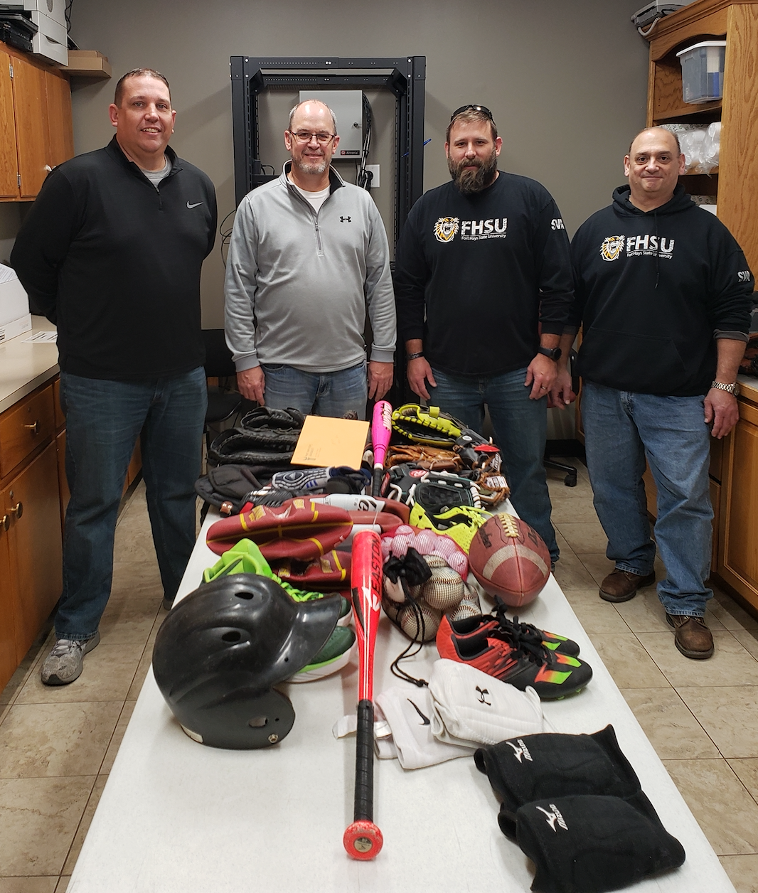 The FHSU Student Veterans Association is making more donations to the Hays Recreation Commission Sports locker. The group recently dropped off another load of sporting equipment that included soccer cleats, basketballs, baseball and softball pants, as wells other sporting equipment.