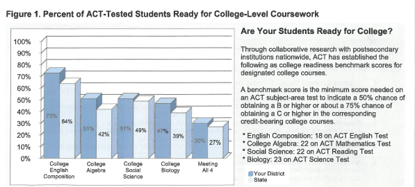 Seventy-three percent of Hays students taking the ACT hit the benchmark for being ready for taking English composition, compared to 64 percent for the state average.