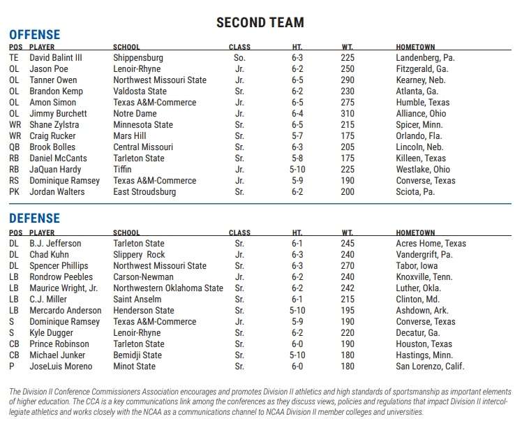 Brown is one of six players from the MIAA to receive All-America honors from the D2CCA this year. Below is the D2CCA All-America Team for 2019.