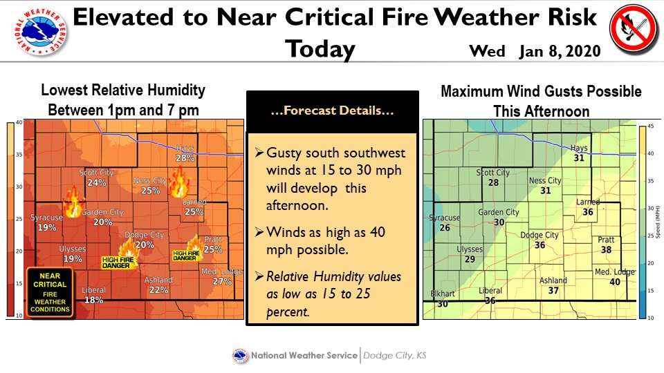 The National Weather Service in Dodge City is warning of the increased risk of fires Wednesday.