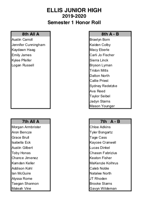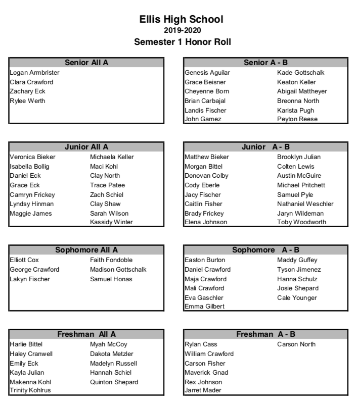 Ellis announces first semester honor roll