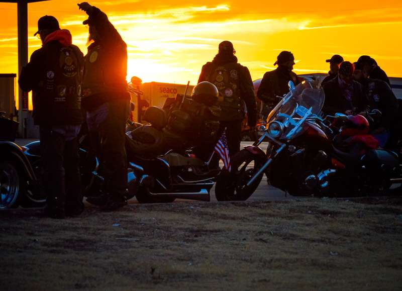 The motorcade stopped briefly in WaKeeney to refuel, where a fresh group of Kansas Patriot Guard riders was waiting to escort the motorcade east towards its ultimate destination of Red Cloud, Neb. where Stratton will be buried with full military honors in a ceremony at 11 a.m. Monday.