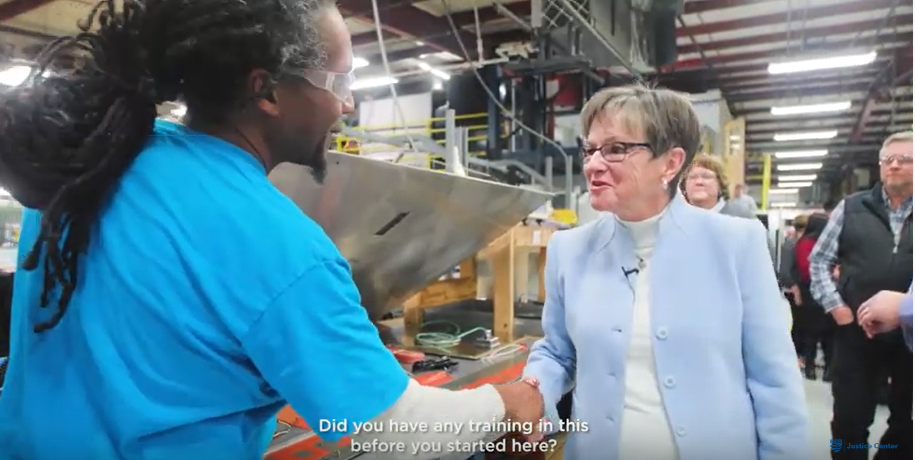 Governor Kelly’s visit to these local businesses was captured as part of the CSG Justice Center’s Face to Face initiative, which encourages elected officials to interact with people who are closest to the corrections system and learn from their stories.