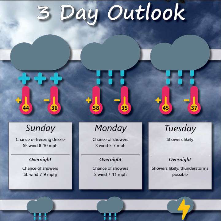For a full look at weather visit the State Farm Weather Window by clicking here.