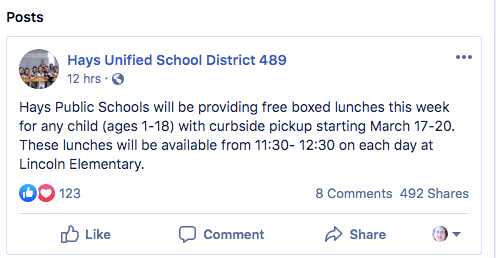 In lieu of this closure, the district will be providing free box lunches this week for any child 1-18 starting on Tuesday, March 17 and running through Friday, March 20.
