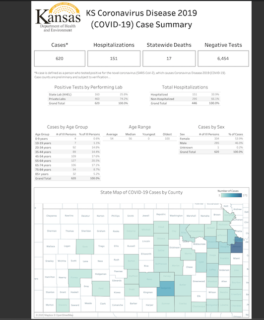 The Kansas Department of Health released the latest coronavirus numbers Friday April 3. Click here for additional details.