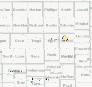 The Kansas Geological Survey on Wednesday reported a small earthquake Tuesday afternoon in Russell County.