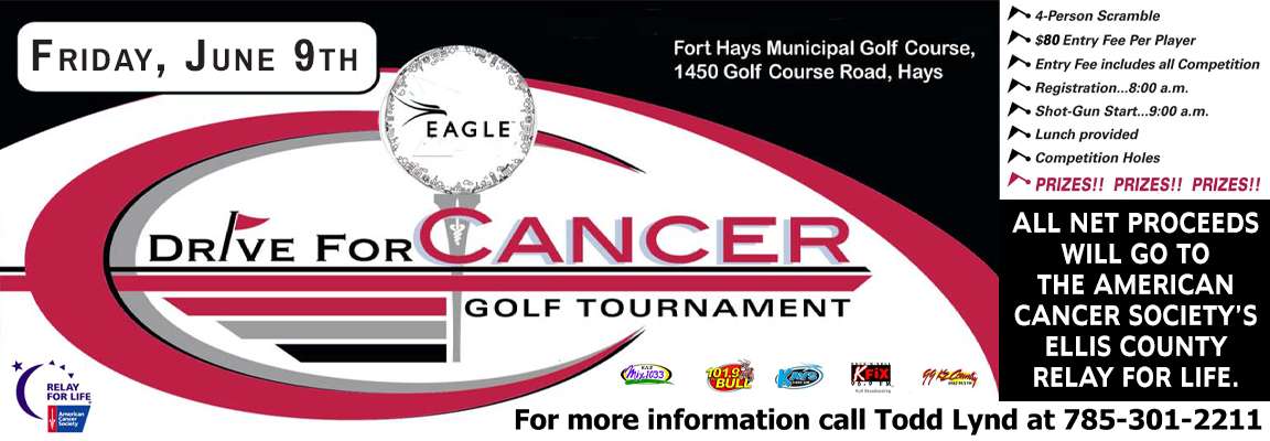 We are still looking for a few more teams to play in the annual Eagle – Relay for Life Golf Tournament at Fort Hays Municipal Golf Course on Friday, June 9th. If you would like to enter your four-person team for only $80 per player, call Todd Lynd at 785-301-2211.