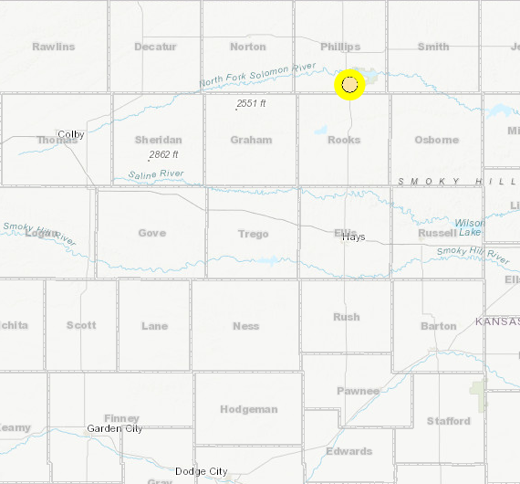 The 2.4-magnitude quake was recorded just north of the Rooks County line at 7:16 p.m.