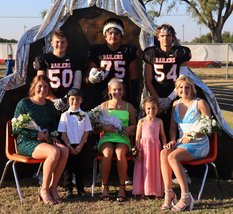 Front row, from left: Candidate Emily Eck, daughter of Mark and Sarah Eck; Crown Bearer Brandt Seibel, son of Craig & Becky Seibel; QUEEN Madelyn Russell, daughter of Kenton and Jessica Russell; Flower Girl Adeline Seibel, daughter of Craig & Becky Seibel; Candidate Myah McCoy, daughter of Casey and Melanie McCoy