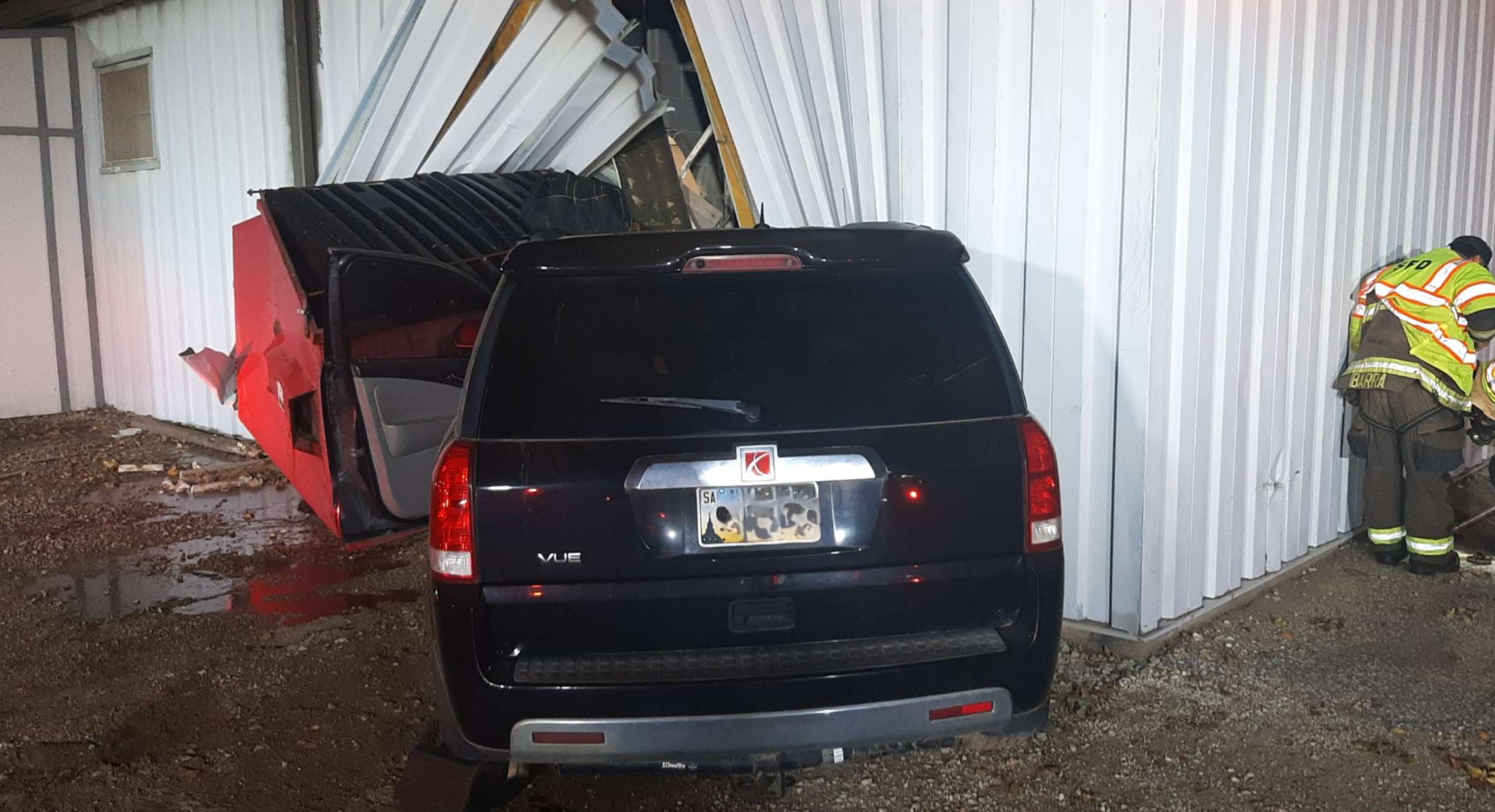According to Saline County Sheriff, Roger Soldan a 2000 Saturn Vue driven by an 18-year-old woman was doing donuts in the parking lot of Kenwood Hall, 900 Greeley Avenue in Salina. The driver lost control of the SUV. It struck a dumpster and continued into the south wall of Kenwood Hall.